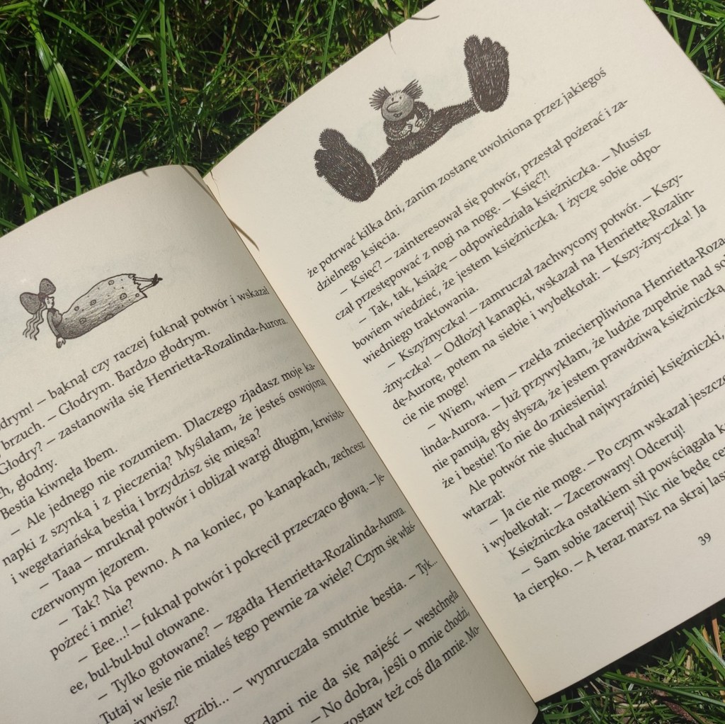 Zapytana niedawno, która z księżniczek bardziej jej sie podoba, odpowiedziała bez wahania, że oczywiście Simplinella. Mogę więc być spokojna o nasz byt – w razie problemów któraś z dziewczyn zdobędzie połowę jakiegoś królestwa 😉 Odkąd przeczytałyśmy tę książkę, Henrietta Rozalinda Aurora stała się w naszym domu najgorszym z możliwych epitetów – zdetronizowała w tej roli nawet Gryzeldę i Anastazję z filmowej wersji Kopciuszka.