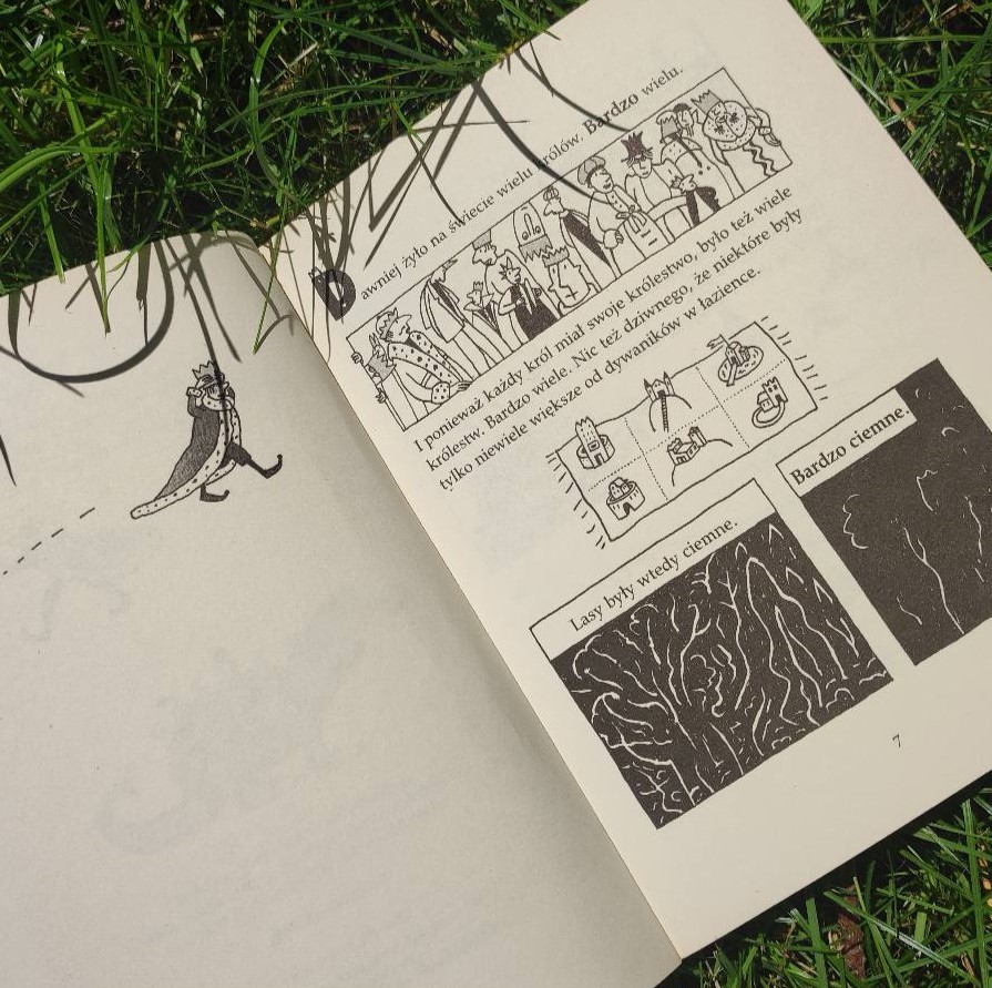 Warto wspomnieć, że ta baśń ukazała się także we wznowionym przez Wydawnictwo Dwie Siostry zbiorze „Klechdy sezamowe” z ilustracjami Jana Lenicy. Tam ilustracji (w przeliczeniu na jedną baśń) jest mniej i są one zupełnie inne niż wilkoniowe, ale też zdecydowanie warto po tę książkę sięgnąć. A najlepiej – porównać jak różnie dwaj Twórcy podeszli do tej samej baśni 🙂