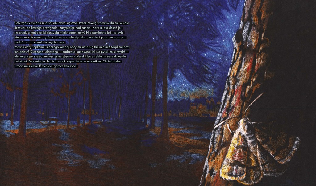 Kiedy pierwszy raz wzięłam tę książkę do ręki i przeczytałam tytuł – przypomniałam sobie o tym nieszczęsnym wypracowaniu. Na szczęście nie trwało to długo, bo zaraz zajęły mnie ilustracje Pawła Pawlaka i traumy odeszły na plan dalszy. Szczególnie urzekły mnie tam fiołki, poziomki i jabłka. Jak to się robi ??? Takie maciuciupusieńkie (szczególnie fiolki), a wyglądają zupełnie jak prawdziwe. Niemal czuje się ich zapach i ma się ochotę spróbować (szczególnie poziomek). Przyznam się Wam, że na widok tych ilustracji owładnęły mną uczucia niechrześcijańskie. Nie będę owijać w bawełnę – to była po prostu zazdrość.
