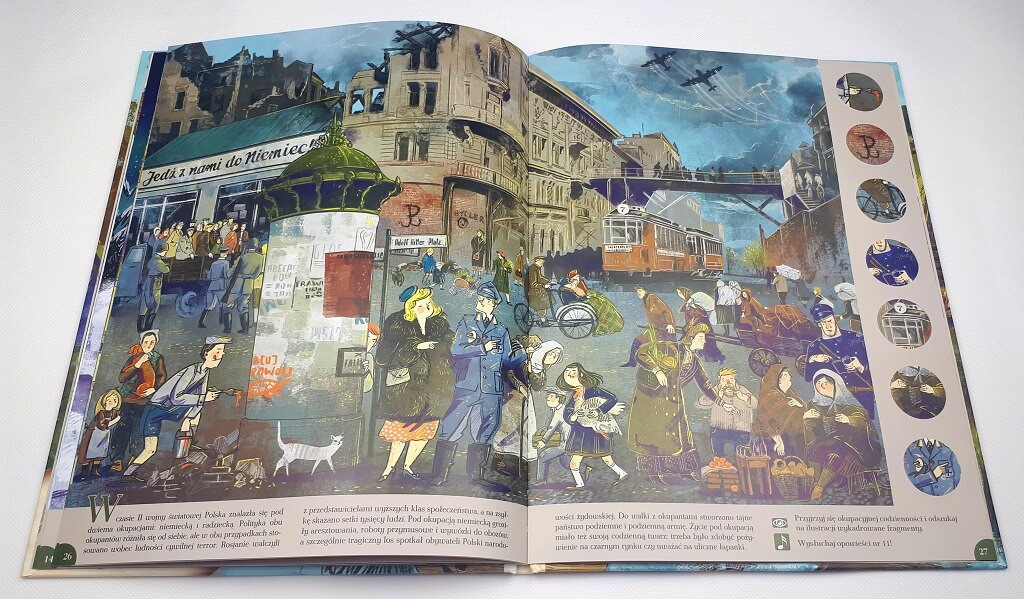 Może w tej walce przyda się taka pomoc naukowa ? Można jej używać analogowo, oglądając pełne szczegółów ilustracje oraz czytając zamieszczone tam teksty i wykonując polecenia. Można też ściągnąć z sieci pliki audio (kod dostępu podany jest w książce) i już offline wysłuchać komentarza historycznego.