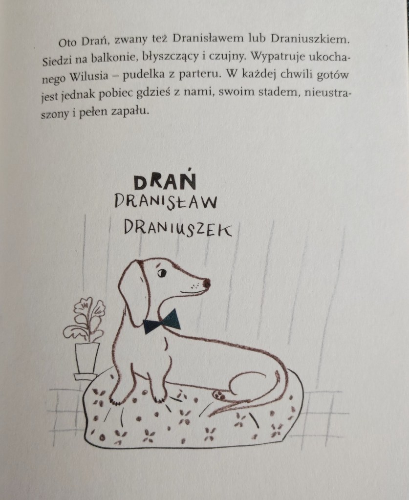 Historie opisane w tej książce wydarzyły się naprawdę, chociaż – jak to z opowieściami bywa – nie są prostym zapisem wydarzeń. Na pewno jednak Drań z książki to mój własny pies: pierwszy w życiu, wyczekany i ukochany. Wierny towarzysz dzieciństwa i powiernik w trudach dorastania. Cierpliwy nauczyciel wrażliwości na psi język i sprawy. To o nim pisałam swoje pierwsze książki, takie jak komiks „O pozycjach jamnika w łóżku”, ofiarowywane rodzinie pod choinkę. Pisząc teraz do Draniu, chciałam choć odrobinę spłacić dług wobec niego. Bo w czasach, gdy było mi źle, pocieszał mnie mądrym spojrzeniem i obecnością. A gdy było mi dobrze, cieszył się całym sobą razem ze mną…