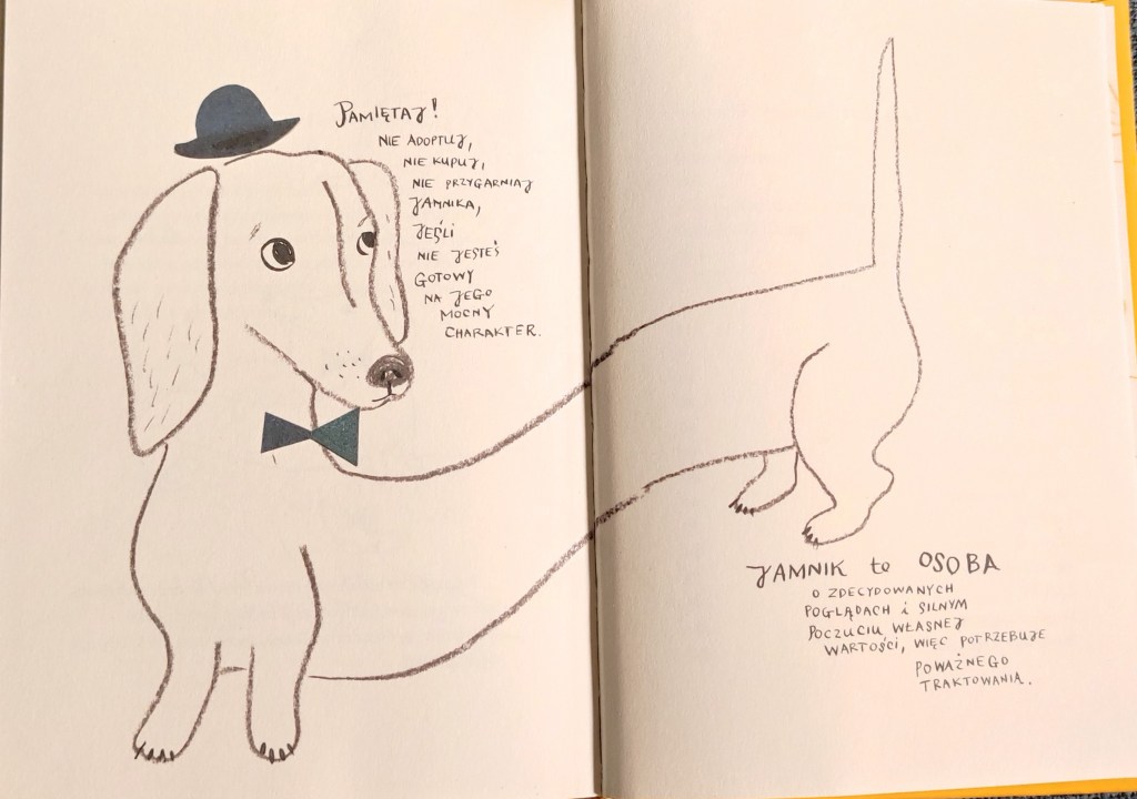 Zofia Stanecka „Drań czyli moje życie z jamnikiem”, ilustr.: Marianna Sztyma, wyd.: Kropka, Warszawa 2022
