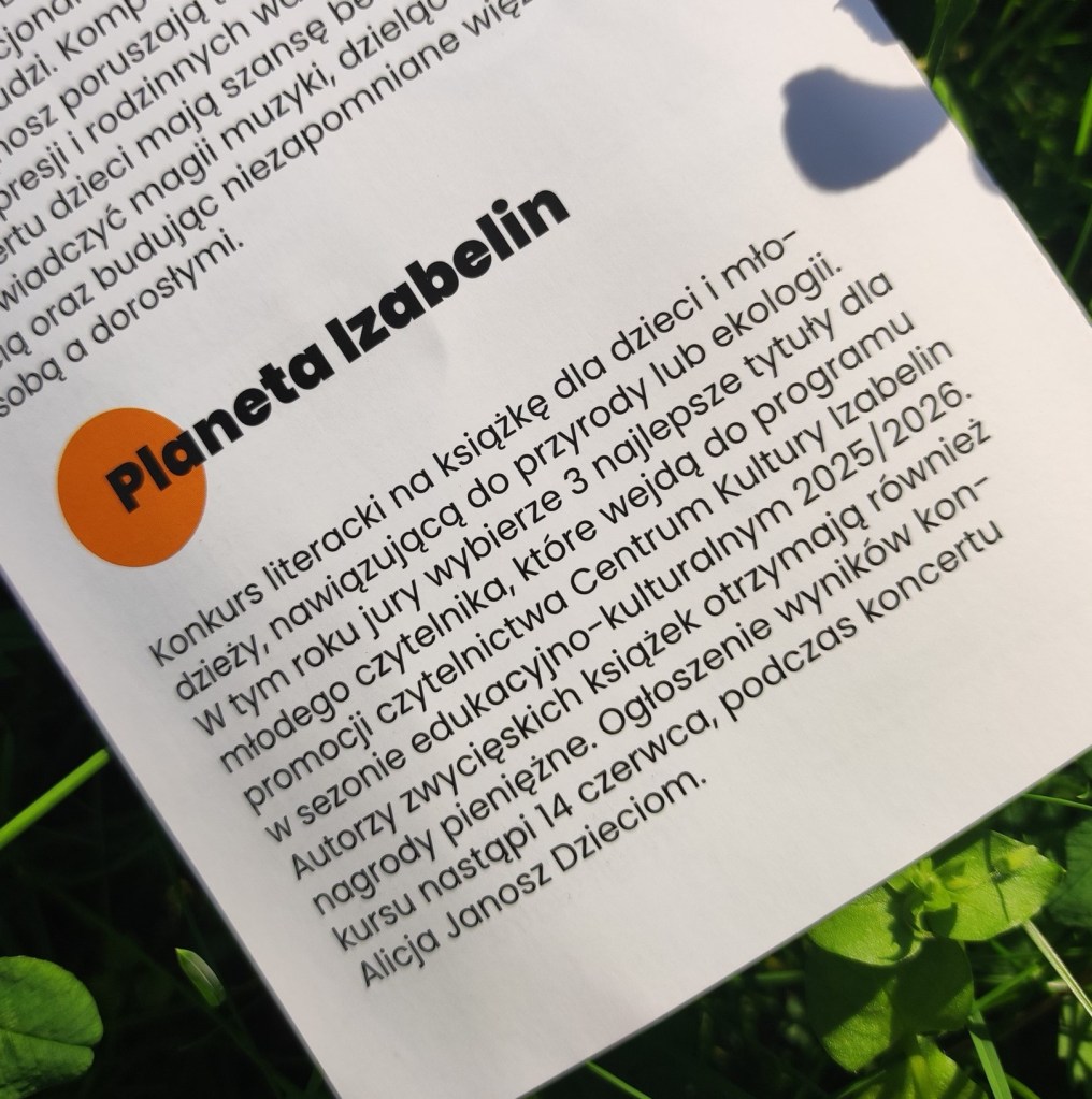 Ten tom wyjątkowo pasuje do nagrody PLANETA IZABELIN, bo nasza gmina położona jest między wielkim miastem a puszczą, więc bliskie są nam problemy związane z życiem i przyrodą zarówno tu, jak i tu 😉