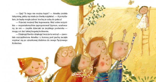 Królewna pojawiła się na podwórku zupełnie niespodziewanie. Dzieci zajęte zabawą zapewne w ogóle nie zwróciłyby na nią uwagi, gdyby nie korona, która – piękna i błyszcząca – połyskiwała w słońcu mnóstwem tęczowych kamyków.