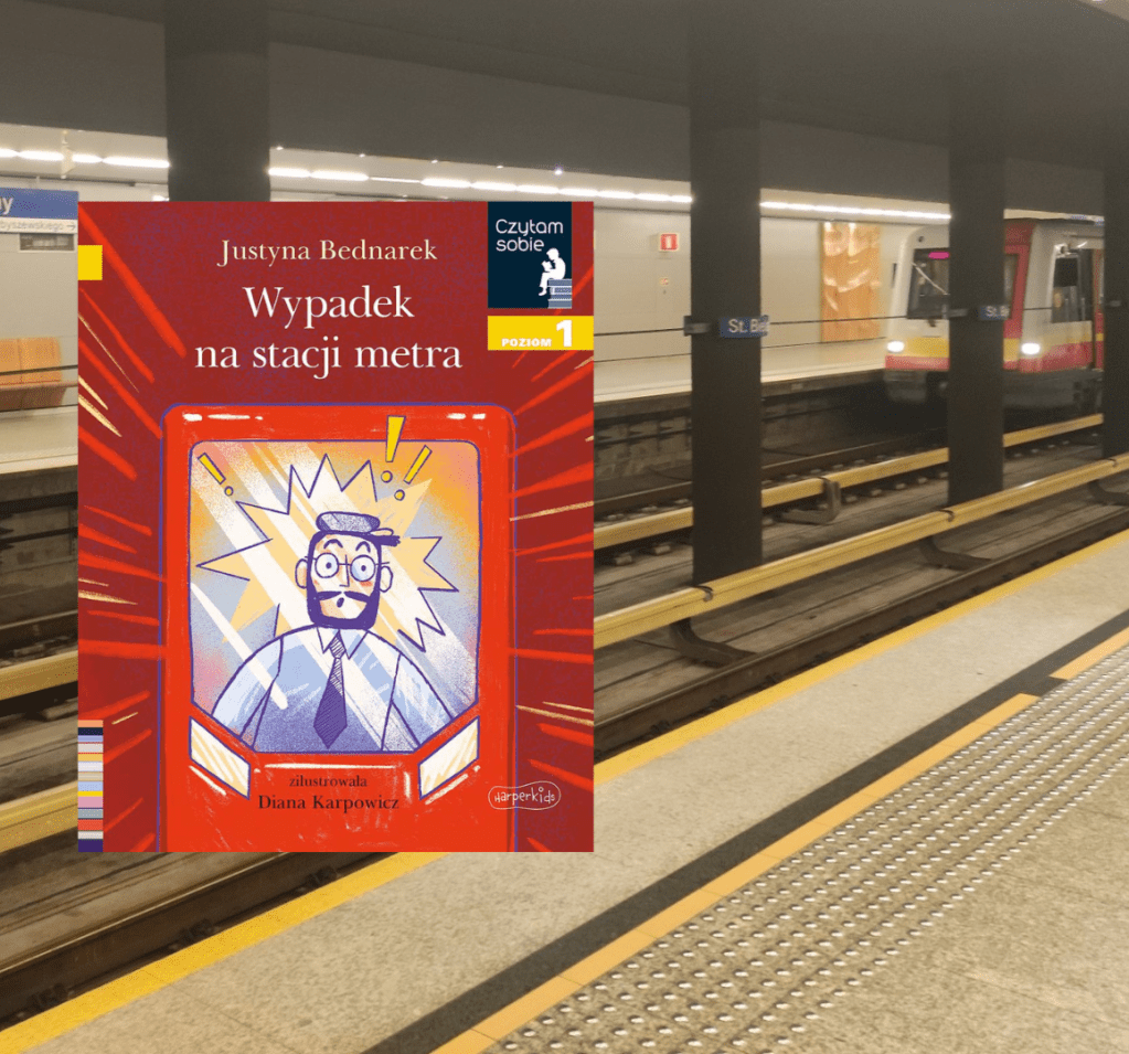 Justyna Bednarek „Wypadek na stacji metra” (seria: Czytam sobie, poziom 1) ilustr.: Diana Karpowicz, wyd.: HarperCollins Polska, Warszawa 2025
