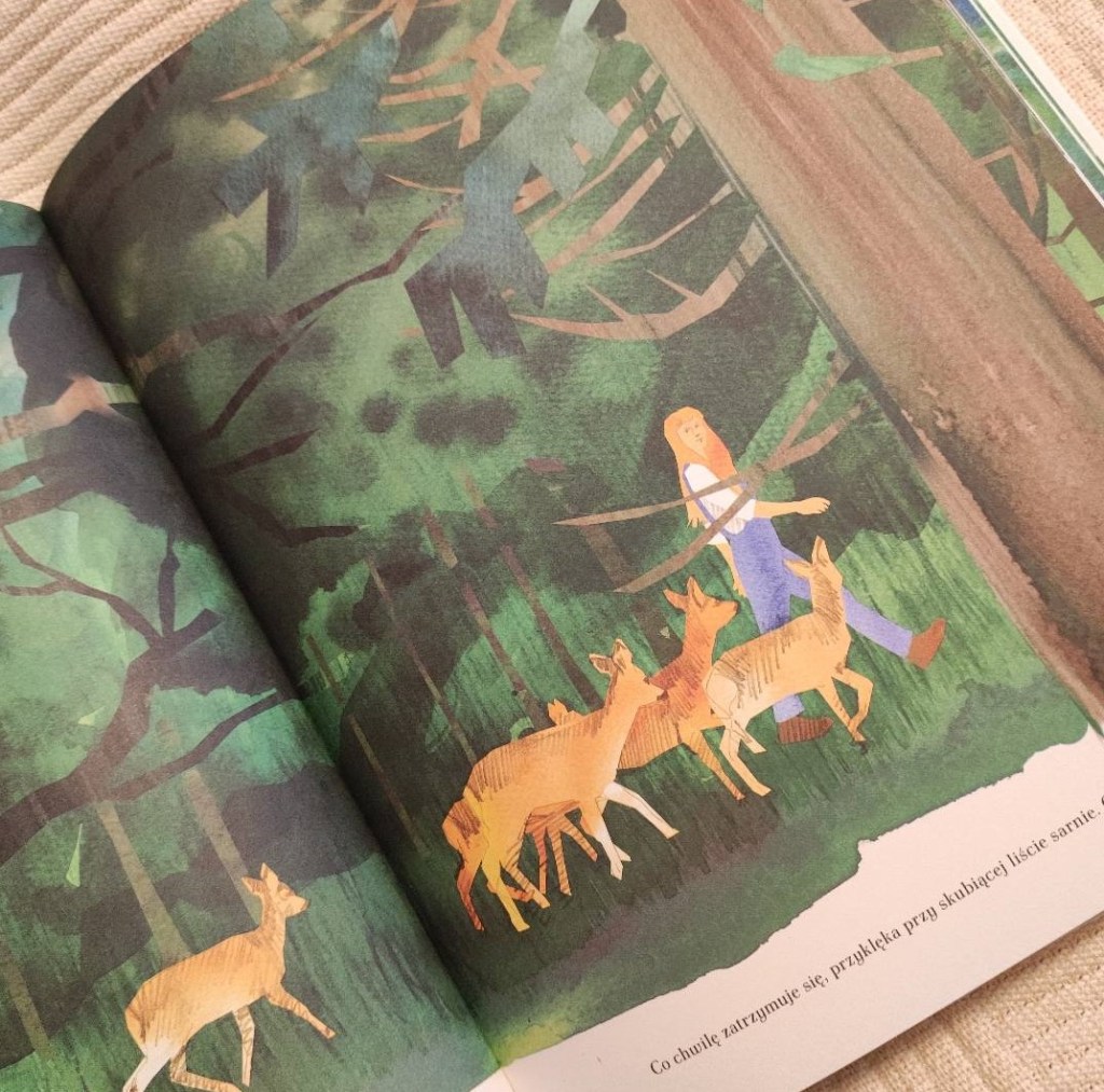 „Puszcza” to książka autorska. Jola Richter-Magnuszewska jest autorką nie tylko tekstu, ale też ilustracji, które tworzą z nim nierozerwalną całość, budują atmosferę, powodują, że wciąga czytelnika od pierwszej strony. To książka dopracowana w najdrobniejszych szczegółach, taka która zasłużyłaby na pewno na nominację w lokomotywowej kategorii OD A do Z. Wszystko w niej jest przemyślane – od pierwszej okładki aż do końca, od faktury papieru przez dobór barw i rozmieszczenie tekstu wśród ilustracji. Jest w niej spokój, piękno i mądrość – jak w puszczy, o której opowiada.