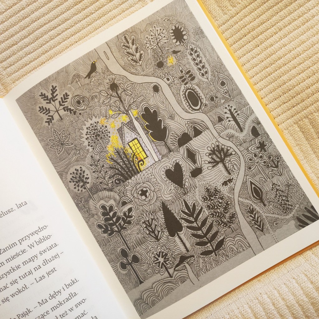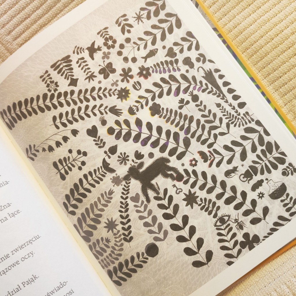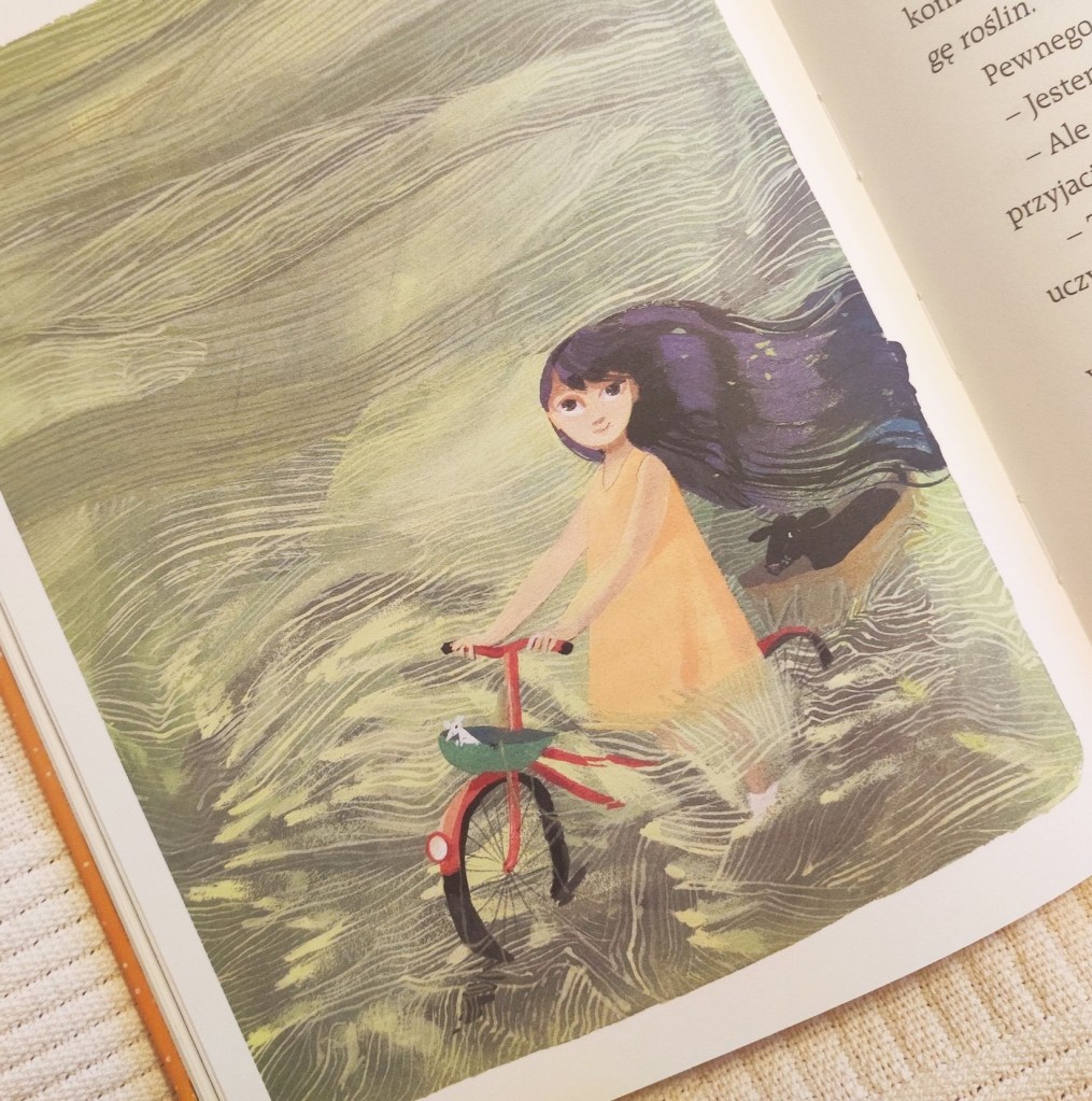 Historii Bazylki, opowiedzianej przez Katarzynę Szestak, towarzyszą bardzo ciekawe ilustracje Elżbiety Wasiuczyńskiej, częściowo wykonane techniką linorytu. To dzięki nim sięgnęłam po tę książkę, bo wcześniej Ela pokazywała te, jak je nazwała, SZARUSY na swoim blogu i byłam bardzo ciekawa końcowego efektu. Trochę żałuję, że wydawnictwo nie zdecydowało się na jej pierwotny pomysł, aby były one przede wszystkim szare, jednak Bazylka w wersji kolorowej też bardzo mi się podoba !