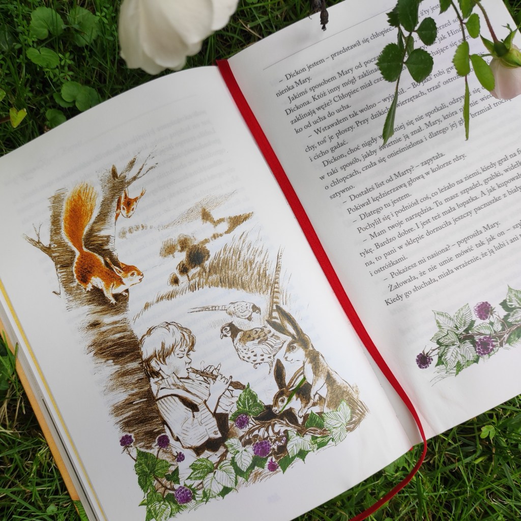 Za to wcześniejszy przekład „Tajemniczego ogrodu”, o którym dowiedziałam się przy tej okazji i bez większego problemu nabyłam tuż przed Świętami, jest dla nas po prostu darem od losu 😉 Ta książka to zaprzeczenie wydań lekturowych, o których wspominałam powyżej. Czyta się świetnie. Zaczęłam podczytywać ją w kolejce do kasy, a kiedy po powrocie do domu dowiedziałam się, że Najmłodsza ma jeszcze do skończenia poprzednią książkę, z wielką przyjemnością doczytałam do końca. Paweł Beręsewicz nie tylko uwspółcześnił język tej powieści, ale wzbogacił ją też o elementy gwary. W poprzednim przekładzie wszyscy bohaterowie, niezależnie od pochodzenia i pozycji, mówili podobnie, w tym – Marta, Dickon i inni rodowici mieszkańcy Yorkshire mówią po tutejszemu. Dzieciom może to początkowo trochę utrudniać lekturę, ale zdecydowanie ją wzbogaca.